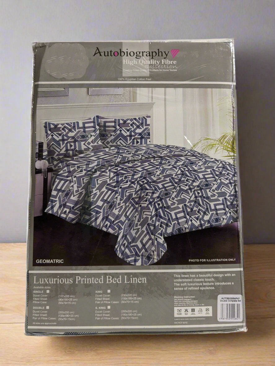 Navy Abstract Print Luxury Microfibre Double Complete Duvet Cover Set
