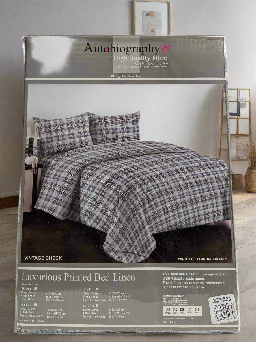 Navy Check Print Luxury Microfibre King Complete Duvet Cover Set