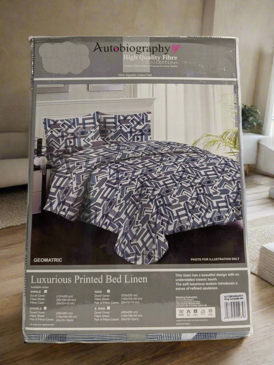 Navy & White Abstract Print Luxury Microfibre King Complete Duvet Cover Set