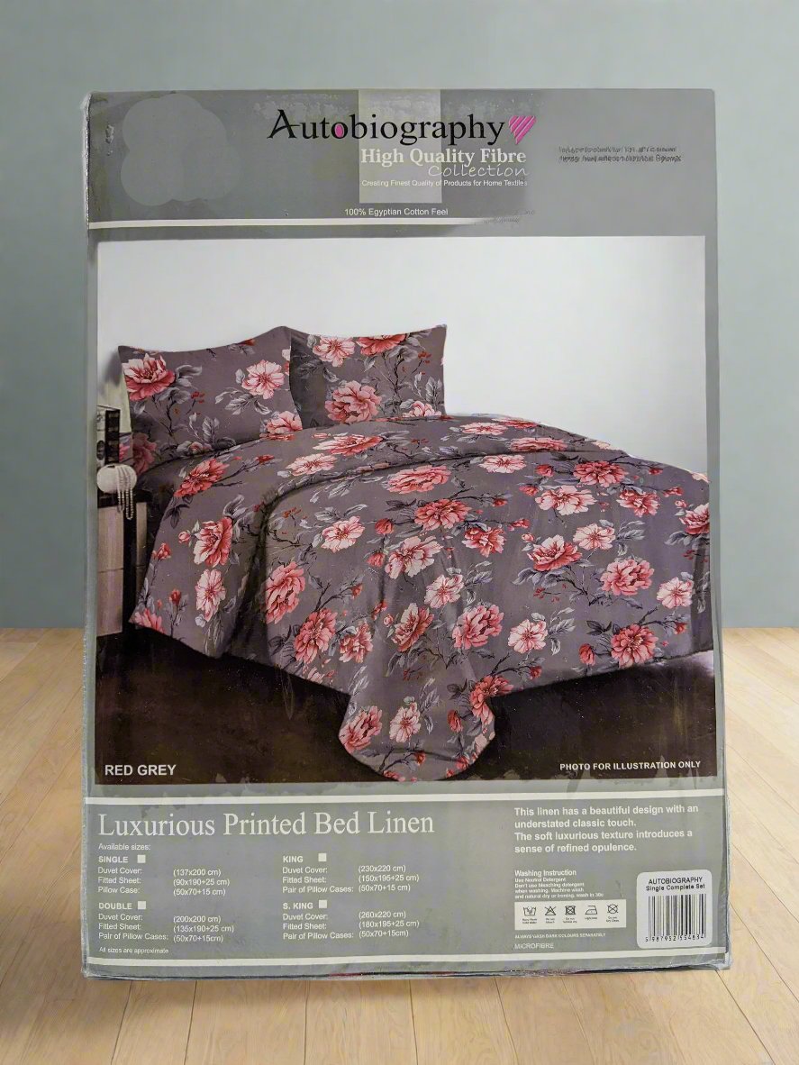 Red & Grey Floral Print Luxury Microfibre Single Complete Duvet Cover Set