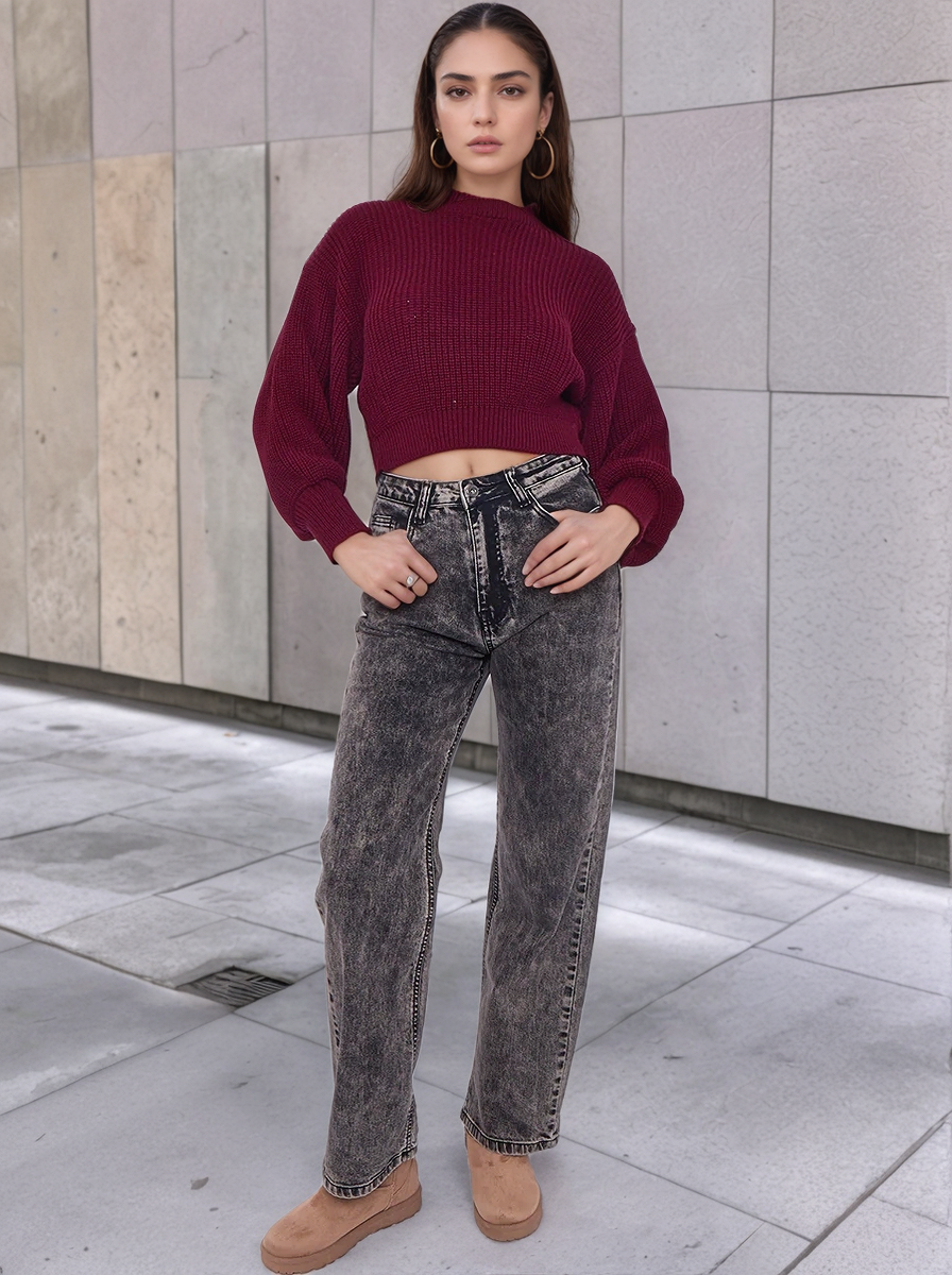 Charcoal Grey Washed Straight Leg Stretch Denim Jeans
