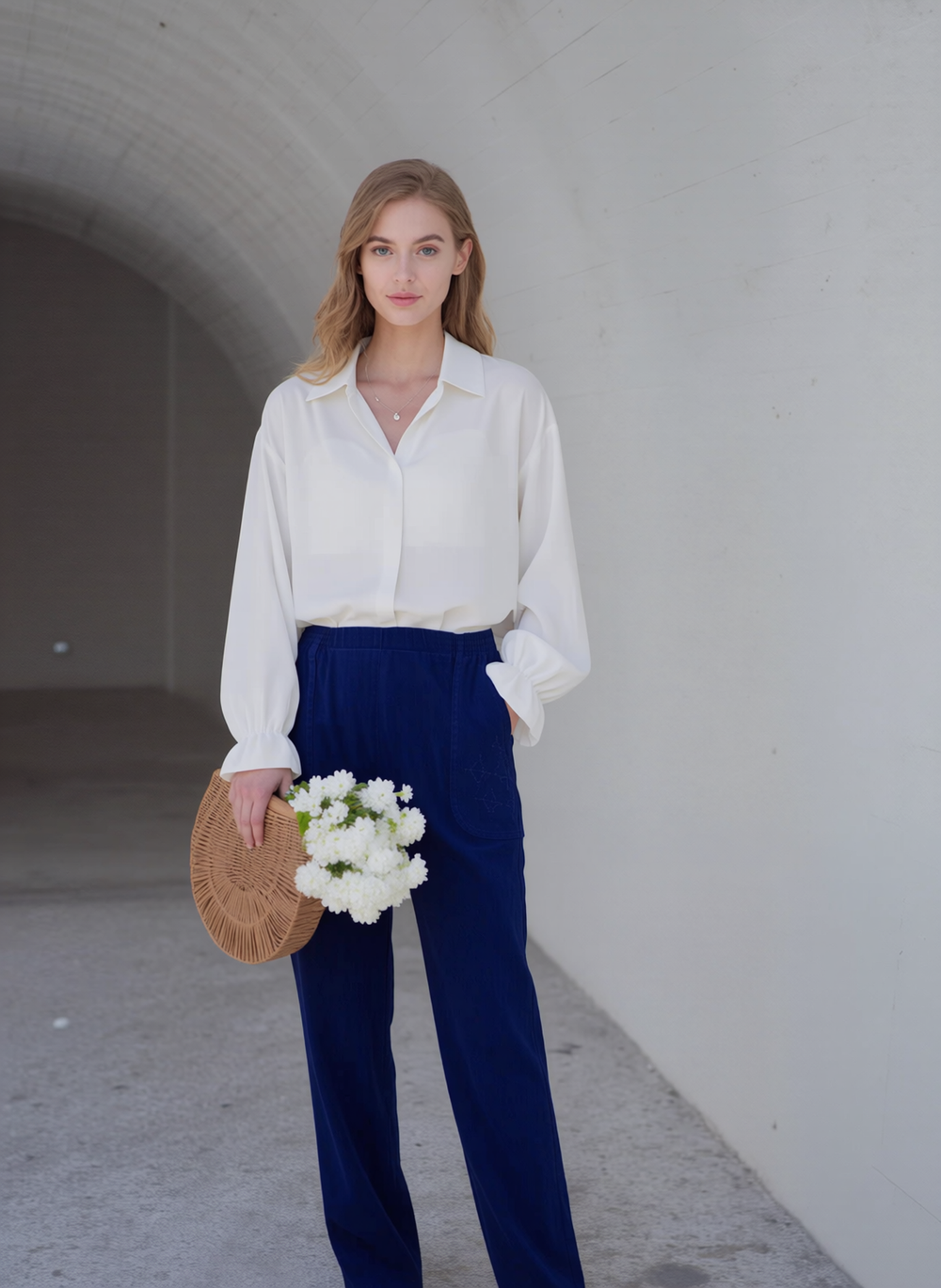 Elegant Navy Blue Wide-Leg Jumpsuit for Women - V-Neck, Short Sleeve, Comfortable & Chic